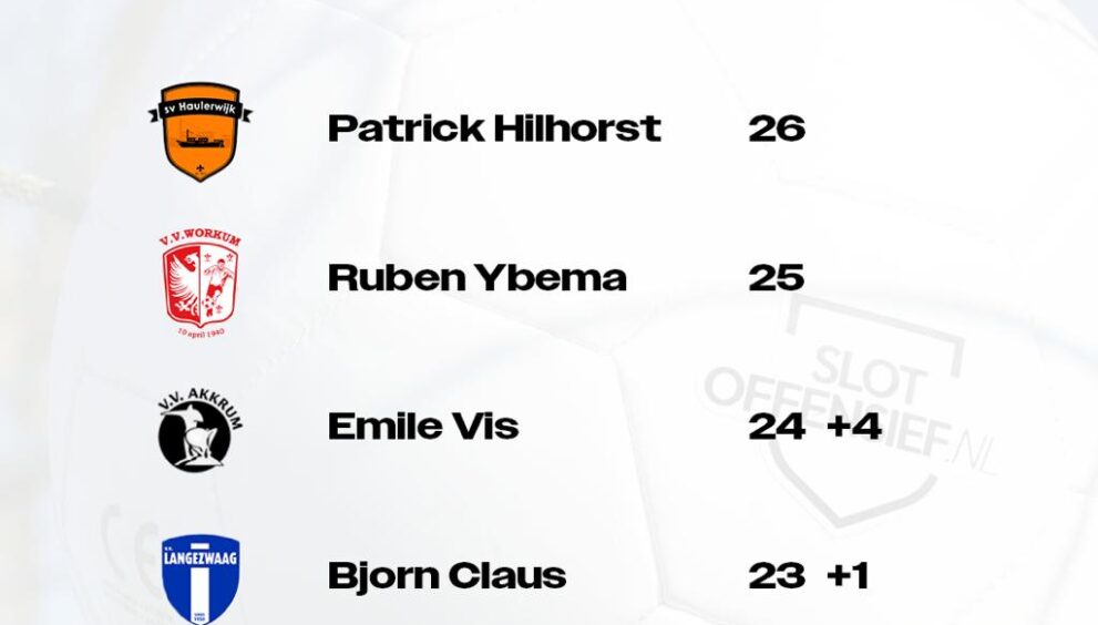 De strijd om de titel van topscorer van Friesland is spannender dan ooit. In de nieuwste lijst van slotoffensief.limbointernational.dev/ is een opvallende nieuwkomer te zien: Emile Vis van VV Akkrum. Dankzij een indrukwekkende prestatie — vier doelpunten in één wedstrijd — heeft hij zich met 24 treffers rechtstreeks in de top 3 genesteld.