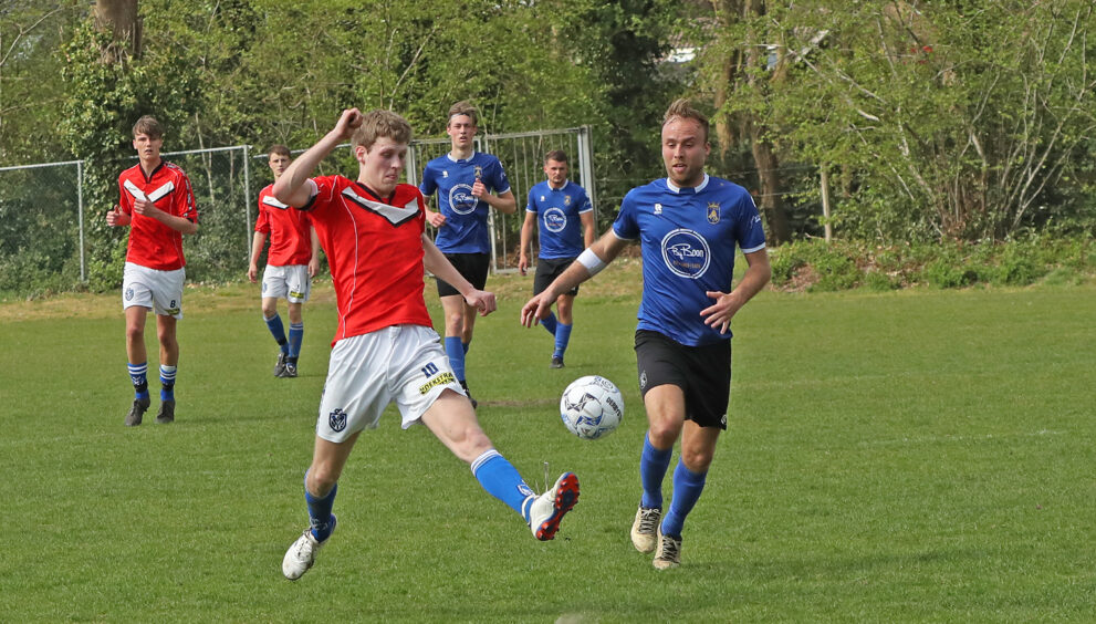 Het eerste kansje was voor Marius de Vries, maar zijn schot na goed terugleggen van Emiel de Vries werd door een verdediger van de thuisclub voor de lijn weggehaald.