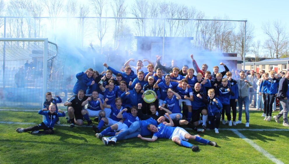 Op bezoek bij Foarút kon IJVC afgelopen weekend definitief een einde maken aan alle onzekerheid. Een overwinning zou genoeg zijn om zich te kronen tot kampioen van de 4e klasse B – en dat wisten de spelers maar al te goed. In een geweldige sfeer reisde de ploeg vanuit IJlst af naar Menaam. Twee volle supportersbussen reden richting het Friese dorp, en ook met eigen vervoer kwamen tientallen IJVC’ers het team aanmoedigen. Alles bij elkaar stonden er zo’n 500 man langs de lijn – een prachtige entourage voor deze beslissende wedstrijd. De spelers wisten wat er op het spel stond: bij winst lonkte niet alleen de kampioensschaal, maar ook een boottocht én een feest met zanger in de Utherne. Dat zorgde voor extra spanning bij de jongens, maar ook voor een flinke lading motivatie.