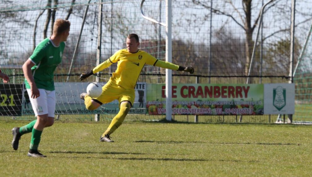 Niet heel veel later kreeg Delfstrahuizen weer een grote kans toen de bal via via voor de voeten van de aanvaller van Delfstrahuizen belande. Gelukkig voor HJSC schoot hij de bal matig in waardoor Erro kon keren.