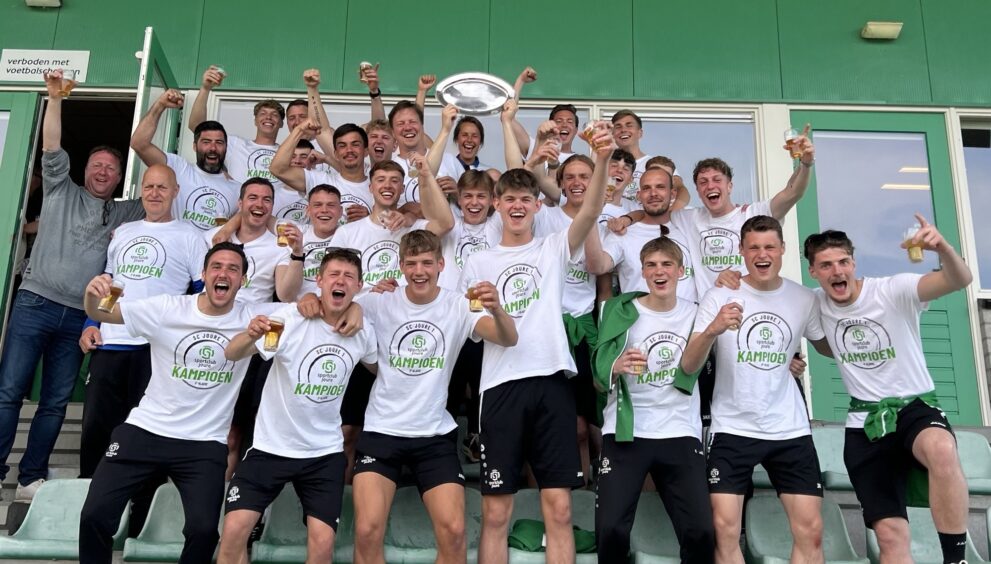 Legendarische woorden. ‘’Mannen, ik zweet nog Heineken, heb plas met een schuimkraag erop en heb pijn int dak. Maar het was een mooi weekend! Goed geregeld en bedankt!’’ Het was eind juni, 2024. Het seizoen 2023/2024 werd afgesloten met een teamweekend. Een seizoen waarin wij nét te kort kwamen voor het kampioenschap. Ondanks deze teleurstelling, werd al in dat teamweekend volop gefantaseerd over het volgende seizoen. Het eerste zaadje van wat komen zou, werd toen al geplant. Maar, de ambitie uitspreken is één ding, het vervolgens bewerkstelligen… Nu, iets minder dan een jaar later, dezelfde ingrediënten als na dat weekend: we zweten bier, hebben pis met een schuimkraag, en hebben massaal pijn in het dak. Want, lieve mensen…WIJ-ZIJN-KAMPIOEN, JA WIJ ZIJN KAMPIOEN!