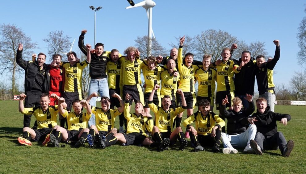 Gustermiddeg stapte ik om een uur of twee bij myn maat in de auto. Dat doen wy al it hele seizoen. Lekker tekaar naar de útwedstriiden. It weer is goed en Blije is niet soa feer. As wy dér ankomme zoek ik naar de man of frou die de boekjes ferkoopt. Mar die is naar Roemenie en dus is d’r geen programmaboekje. Wel een bitsje armeterig sêg ik teugen myn maat. It is wat it is en nou wete wij niet hoe de jonges fan Blije hete. Stadichjesan, in it ferloop fan de westriid, wurdt it wel dúdlik hoe at se hete en wie de doelpunten maakt. Wat souen onze jongens d’r fandaag fan bakke. We misse weer twee hannen fol speulers. Souen Jelmer en Sjoerd weer een paar ferrassingen in petto hewwe? At Blije d’r foor gaat kin se nach een periode pakke en dus dinke wy dat it een pittig potsje wurde sil.