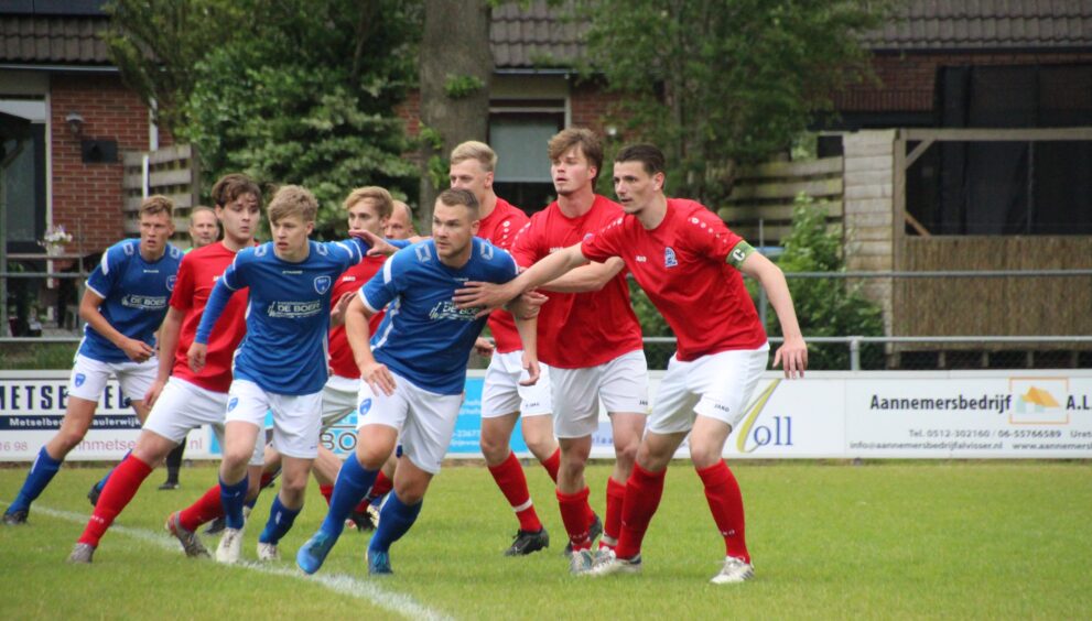 In het begin van de 1e helft ging het gelijk op, over en weer kansen. Toch was het ODV in de 18e minuut die de 1-0 scoorde. Het was nog maar 3 minuten later dat de spits van ODV de 2-0 op het scorebord zette. Toeschouwers zeiden al dit zal toch geen walk-over worden? Gelukkig lieten wij de kopjes niet hangen en probeerden de achterstand weg te werken. Een perfecte corner van Arjen van der Werff, op de vrijgelopen Tieme Stavast, die precies op het hoofd van hem kwam en hij kopte de 2-1 tegen de touwen. Een minuut later was het weer Arjen van der Werff die nu een prachtige steekpass op Eelko Bosma gaf en hij scoorde de 2-2. Dit was ook de ruststand.