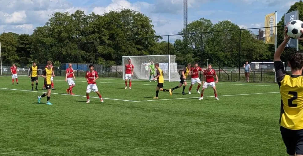 Echter een minuut later was het weer gelijk. Het leek een overtreding te zijn op Irolt, randje zestien, maar de scheids liet door spelen en vanaf een meter of 30 viel de bal via een lob zowaar in het doel.