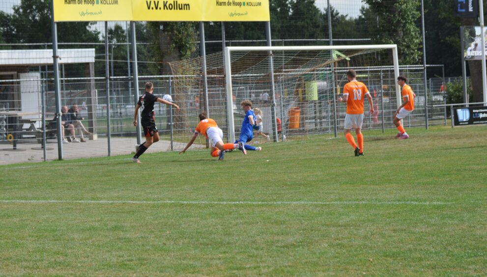 Bij de eerste bekerwedstrijd van het nieuwe seizoen kwam promovendus vv Zwaagwesteinde op bezoek bij vv Kollum. De twee ploegen zullen elkaar in de competitie ook weer treffen dus het was interessant om te zien hoe de krachtsverhoudingen waren. Vv Kollum liet tijdens oefenwedstrijden in de voorbereiding af en toe prima voetbal zien. Helaas zagen we dat tijdens de 1e helft tegen Zwaagwesteinde niet terug. De eerste helft kenmerkte zich door slordig spel met veel balverlies. Dit gold zowel voor vv Kollum als voor vv Zwaagwesteinde. Wel had Zwaagwesteinde het meeste balbezit en daarmee was het de ploeg die de meeste aanspraak maakte op een goal. Tot en met de 43e minuut wist vv Kollum keeper Thies Hoekstra een paar keer fraai redding te brengen, maar in de 44e minuut was het de snelle rechtsbuiten van vv Zwaagwesteinde Leroy Sletering die de 0-1 scoorde. In de 46e minuut werd een schot op goal van een Kollum-speler geblokt, en in de omschakeling was het weer Leroy Sletering die de 0-2 maakte.