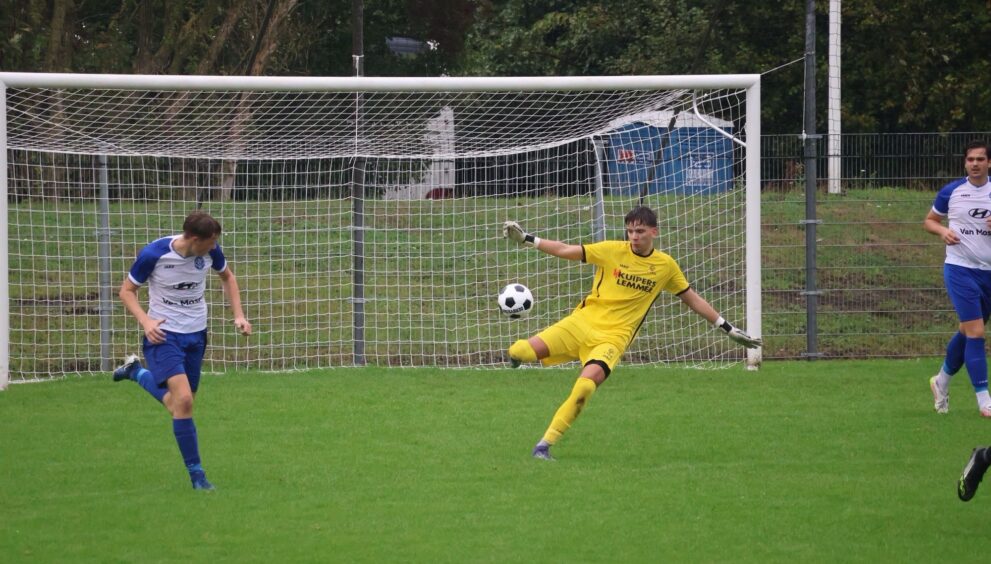 De backs Wietze van de Heerik en Remco de Vries verschenen nadrukkelijk op de radar van de scheidsrechter, maar deze liet het vooralsnog bij waarschuwingen. De beste kans was voor Gerben Visser toen hij de diepte in werd gestuurd door Tije Heeres. Gerben slaagde er niet in de keeper te passeren. Balk probeerde het een keer van afstand maar Lars Brouwer was op zijn post.