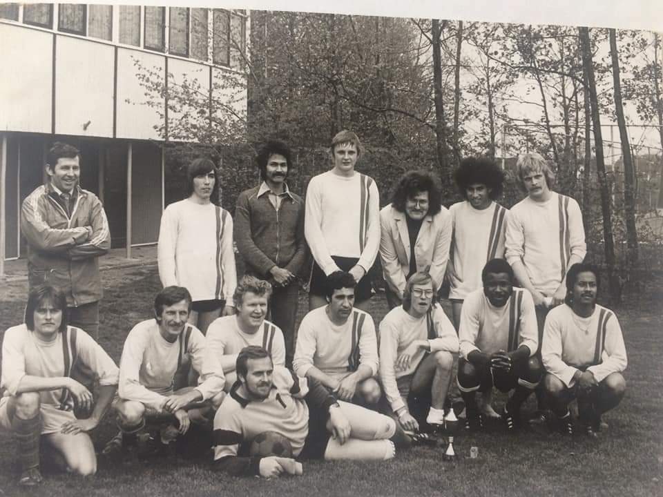 Een Phileon-team in de jaren ’70, gefotografeerd voor de beregezellige kantine.