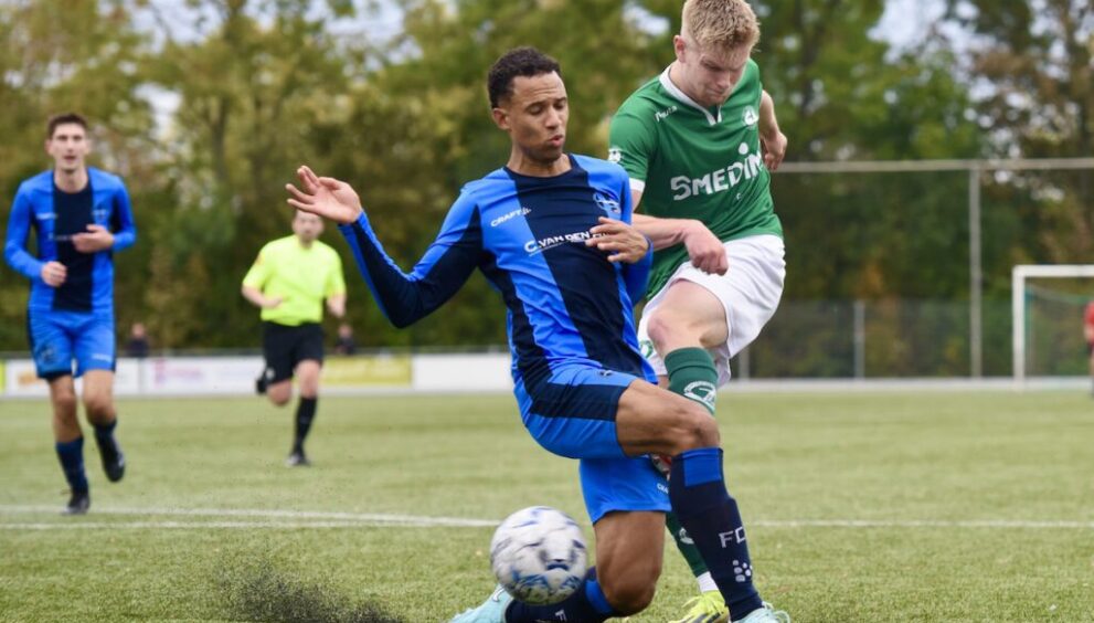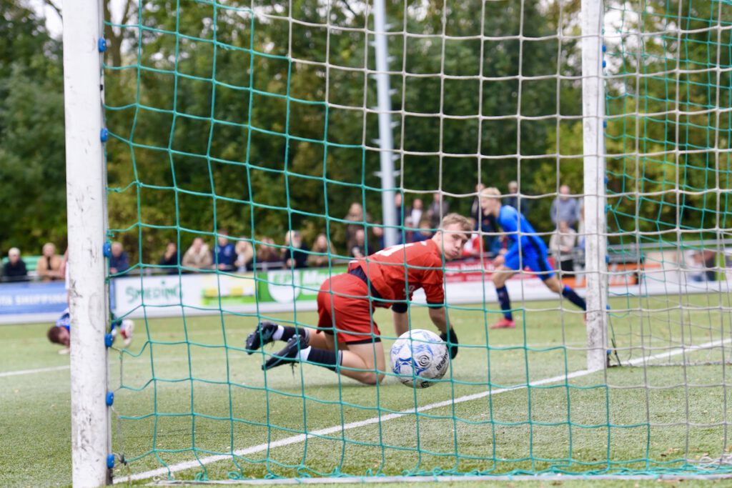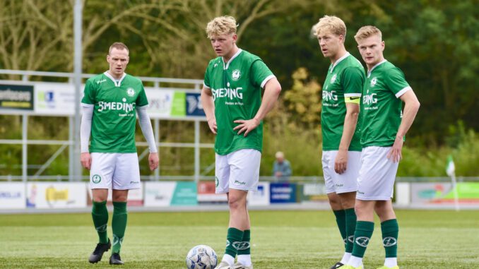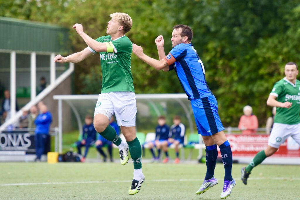 De eerste aanval was een voorbode voor de volgende 15 minuten, Patrick van der Veen speelde Thomas Dijkstra over de hele aan. Zijn dieptepass op Noa van Gils belandde in het doelgebied bij Bauke Kamminga, gemakkelijk afgefloten door de overigens uitstekend fluitende referee Köhler. Kort hierop hectische taferelen in de zestien, Bauke Kamminga vond de doelman op zijn pad. De 1 – 0 kwam er dan toch. Patrick Amels speelde spits Kamminga aan, in één beweging doorgespeeld naar de sprintende Thom Faber, hij omspeelde keeper van der Meer en plaatste de bal in het vrije doel. Nog geen minuut later opnieuw Thom Faber in de hoofdrol, nu net naast in het zijnet. Maak je deze kans dan neem je afstand en krijg je een totaal andere wedstrijd. De furie van de thuisclub verbleekte en het duel mondde uit in evenwicht. Tot de communicatiestoornis tussen keeper Van der Walt en een middenvelder. Afgestraft door Thomas Pruis, 1 – 1. Laatste wapenfeit kwam op naam van Patrick Amels. Een vrije trap van Wesley Tankink halverwege de helft van de opponent werd in één keer op de wreef genomen door Amels, de doelman wist de volley in de korte hoek ten koste van een corner te pareren.